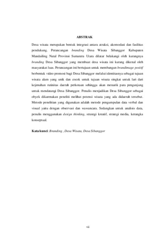 Desa wisata merupakan bentuk integrasi antara atraksi, akomodasi dan fasilitas pendukung. Perancangan branding Desa Wisata Sibanggor Kabupaten Mandailing Natal Provinsi Sumatera Utara dilatar belakangi oleh kurangnya branding Desa Sibanggor yang membuat desa wisata ini kurang dikenal oleh masyarakat luas. Perancangan ini bertujuan untuk membangun brandimage positif berbentuk video promosi bagi Desa Sibanggor melalui identitasnya sebagai tujuan wisata alam yang unik dan cocok untuk tujuan wisata singkat untuk lari dari kejenuhan rutinitas daerah perkotaan sehingga akan menarik para pengunjung untuk mendatangi Desa Sibanggor. Penulis menjadikan Desa Sibanggor sebagai obyek dikarenakan peneliti melihat potensi wisata yang ada didaerah tersebut. Metode penelitian yang digunakan adalah metode pengumpulan data verbal dan visual yaitu dengan observasi dan wawancara. Sedangkan untuk analisis data, penulis menggunakan design thinking, strategi kreatif, strategi media, kerangka konseptual.