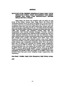 PUTRI, RANTI DWI (2023) PREDIKSI PERSEDIAAN BAHAN BAKU UNTUK MENUNJANG SUPPLY CHAIN MANAGEMENT PADA HEPPY BAKERY DAN WINDA CAKE MENGGUNAKAN METODE SINGLE MOVING AVERAGE. Sarjana thesis, Universitas Putra Indonesia "YPTK" Padang.