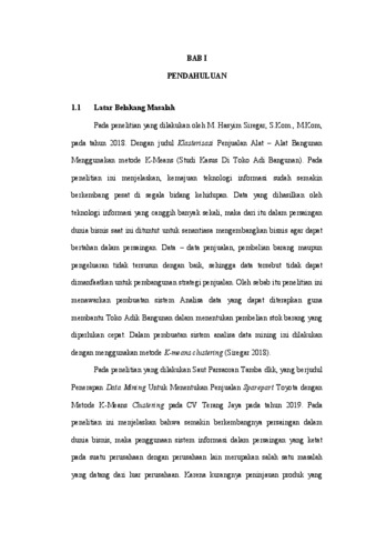PUTRI, RESTY AMELIA (2023) PENERAPAN BUSINESS MANAGEMENT DENGAN MEMANFAATKAN TEKNIK KLASTERISASI UNTUK MENGELOMPOKKAN PENJUALAN SPAREPART MOBIL PADA TOKO IKHSAN MOTOR PARIAMAN MENGGUNAKAN METODE ALGORITMA K-MEDOIDS. Sarjana thesis, Universitas Putra Indonesia "YPTK" Padang.