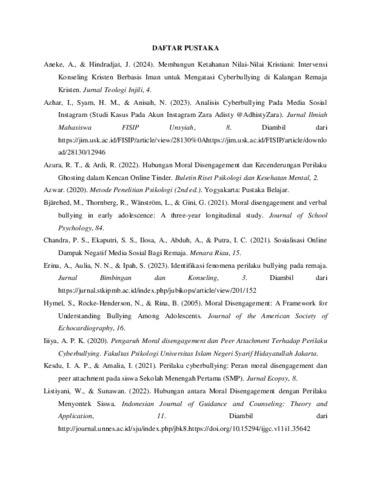 HUBUNGAN ANTARA MORAL DISENGAGEMENT DENGAN CYBERBULLYING PADA SISWA KELAS XI PENGGUNA MEDIA SOSIAL DI SMAN 1 TALAMAU KABUPATEN PASAMAN BARAT
