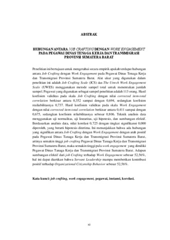 Andalusia, Natasya Luluatin Al (2025) HUBUNGAN ANTARA JOB CRAFTING DENGAN WORK ENGAGEMENT PADA PEGAWAI DINAS TENAGA KERJA DAN TRANSMIGRASI PROVINSI SUMATERA BARAT. Sarjana thesis, Universitas Putra Indonesia YPTK.