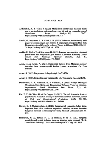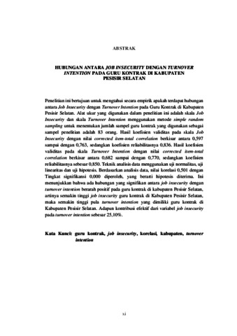 HUBUNGAN ANTARA JOB INSECURITY DENGAN TURNOVER INTENTION PADA GURU KONTRAK DI KABUPATEN PESISIR SELATAN