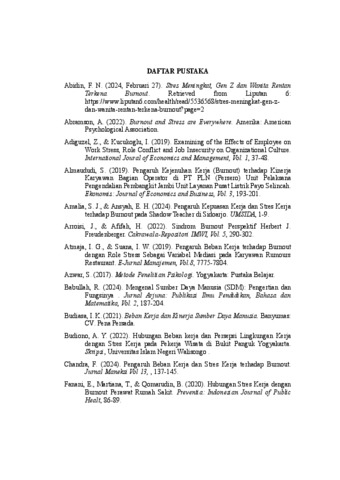 Murtadha, Afif Zhafran (2025) HUBUNGAN STRES KERJA DENGAN BURNOUT PADA KARYAWAN DI PT. TECHNOMAS INTERNUSA PADANG. Sarjana thesis, Universitas Putra Indonesia YPTK.