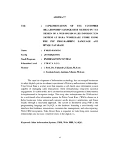 IMPLEMENTASI METODE CUSTOMER RELATIONSHIP MANAGEMENT DALAM PERANCANGAN SISTEM INFORMASI PENJUALAN BEBASIS WEB PADA TOKO GROSIR RARA DENGAN MENGGUNAKAN BAHASA PEMOGRAMAN PHP DAN DATABASE MYSQL