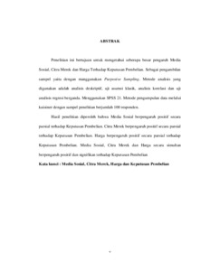 Penelitian ini bertujuan untuk mengetahui seberapa besar pengaruh Media Sosial, Citra Merek dan Harga Terhadap Keputusan Pembelian. Sebagai pengambilan sampel yaitu dengan manggunakan Purposive Sampling. Metode analisis yang digunakan adalah analisis deskriptif, uji asumsi klasik, analisis korelasi dan uji analisis regresi berganda. Menggunakan SPSS 21. Metode pengumpulan data melalui kuisiner dengan sampel penelitian berjumlah 100 responden. Hasil penelitian diperoleh bahwa Media Sosial berpengaruh positif secara parsial terhadap Keputusan Pembelian. Citra Merek berpengaruh positif secara parsial terhadap Keputusan Pembelian. Harga berpengaruh positif secara parsial terhadap Keputusan Pembelian. Media Sosial, Citra Merek dan Harga secara simultan berpengaruh positif dan signifikan terhadap Keputusan Pembelian Kata kunci : Media Sosial, Citra Merek, Harga dan Keputusan Pembelian